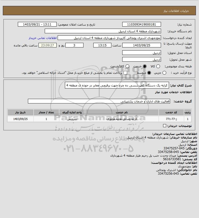 نام دستگاه خریدار:شهرداری منطقه 4 استان اردبیل