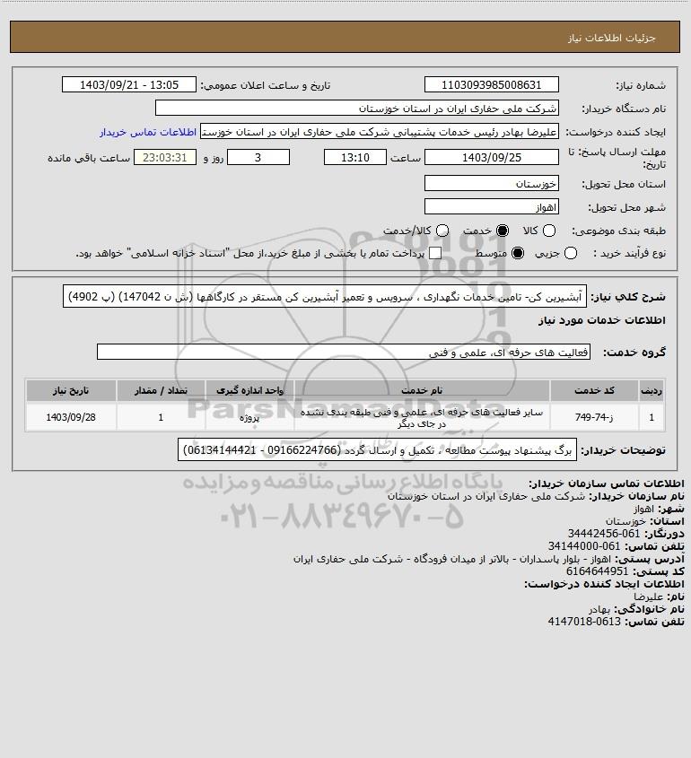 نام دستگاه خریدار:شرکت ملی حفاری ایران در استان خوزستان