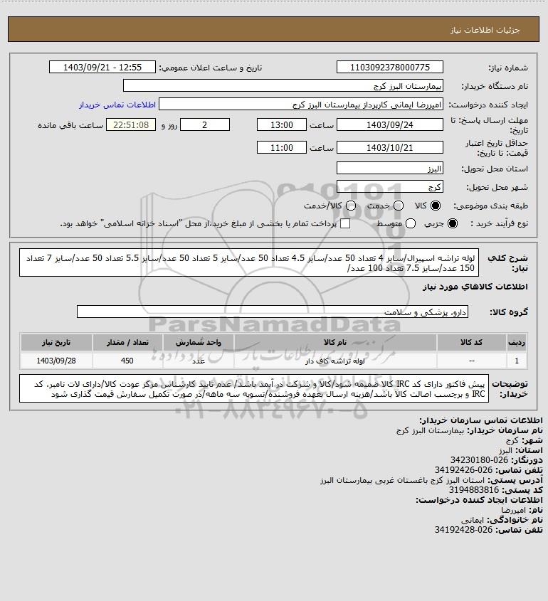 نام دستگاه خریدار:بیمارستان البرز کرج