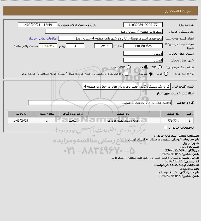 نام دستگاه خریدار:شهرداری منطقه 4 استان اردبیل