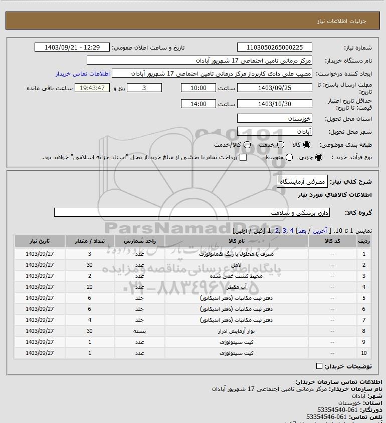 نام دستگاه خریدار:مرکز درمانی تامین اجتماعی 17 شهریور آبادان