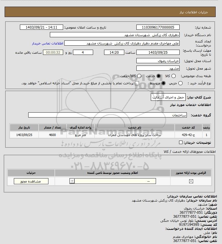 شرح کلی نیاز: حمل و اجرای آسفالت
