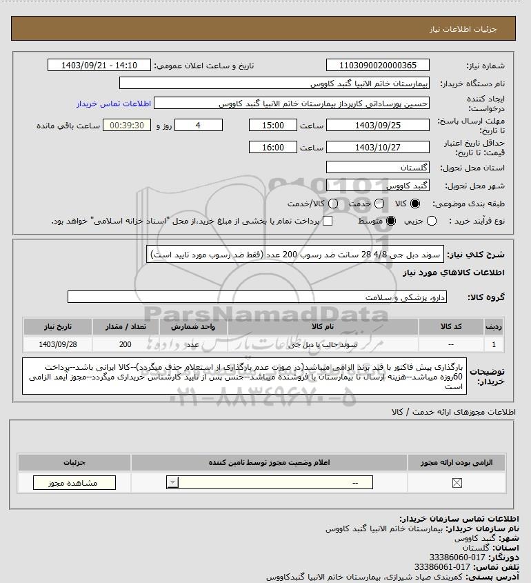 نام سازمان خریدار: بیمارستان خاتم الانبیا گنبد کاووس