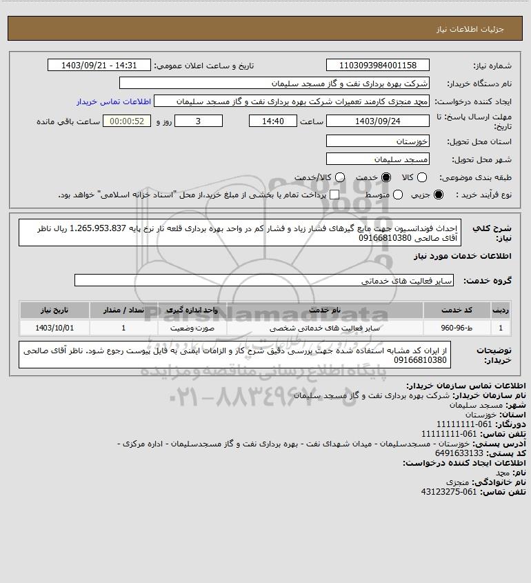 نام دستگاه خریدار:شرکت بهره برداری نفت و گاز مسجد سلیمان