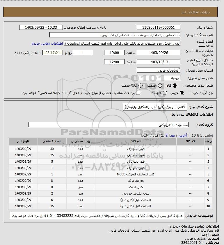 نام سازمان خریدار: بانک ملی ایران اداره امور شعب استان اذربایجان غربی