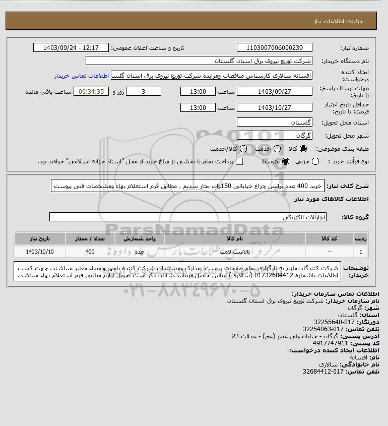 نام دستگاه خریدار:شرکت توزیع نیروی برق استان گلستان