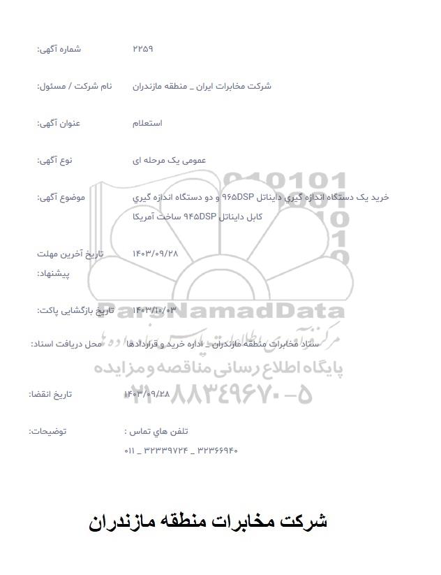 برای شرکت در مناقصه حتما از تصویر آگهی در سایت پارس نماد داده ها استفاده نمایید