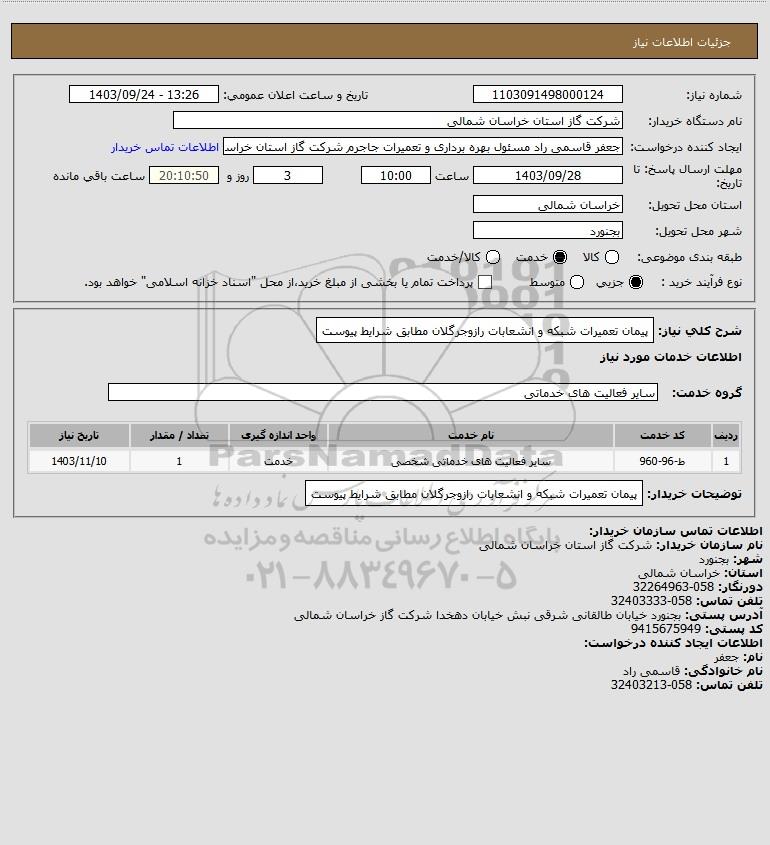 نام دستگاه خریدار:شرکت گاز استان خراسان شمالی