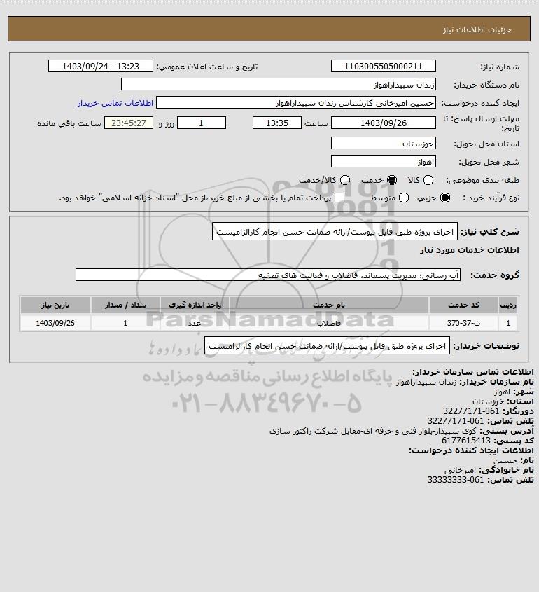 شرح کلی نیاز: اجرای پروژه طبق فایل پیوست/ارائه ضمانت حسن انجام کارالزامیست