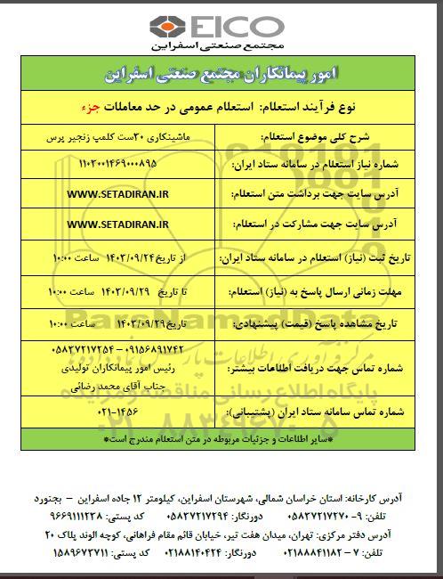 شرح کلی موضوع استعلام: ماشینکاری 30ست کلمپ زنجیر پرس