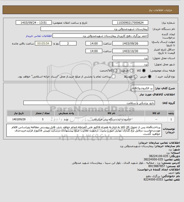 نام سازمان خریدار: بیمارستان شهیدصدوقی یزد