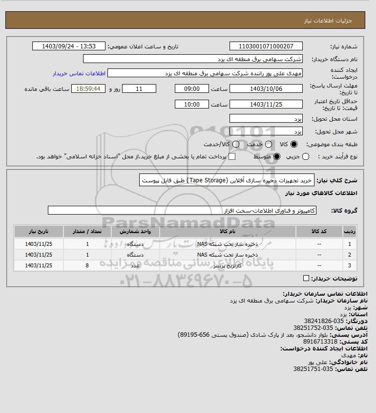 | 2 | -- | ذخیره ساز تحت شبکه NAS | دستگاه | 1 | 1403/11/25 |