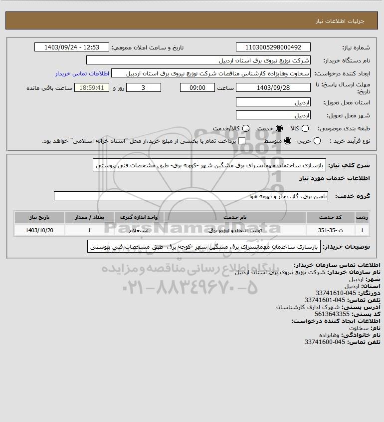 نام سازمان خریدار: شرکت توزیع نیروی برق استان اردبیل