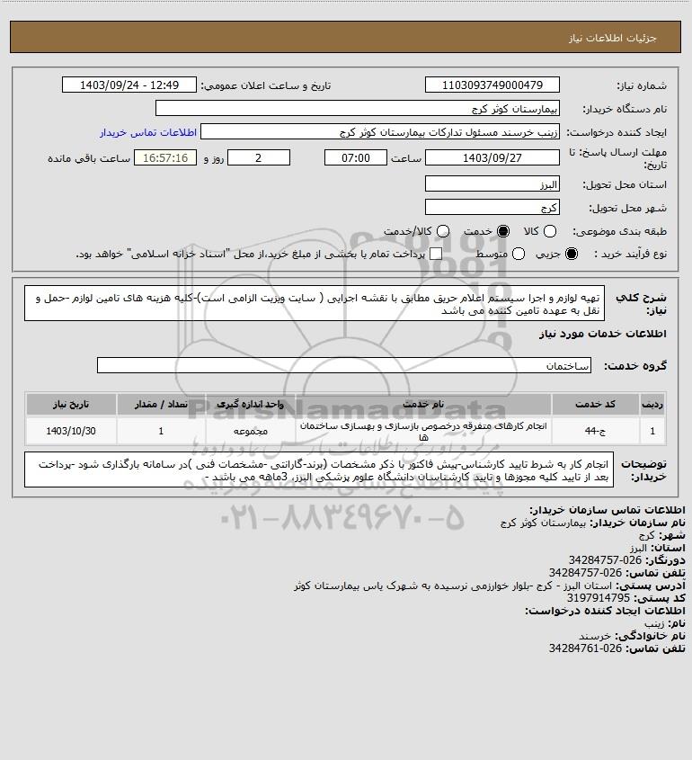 نام سازمان خریدار: بیمارستان کوثر کرج