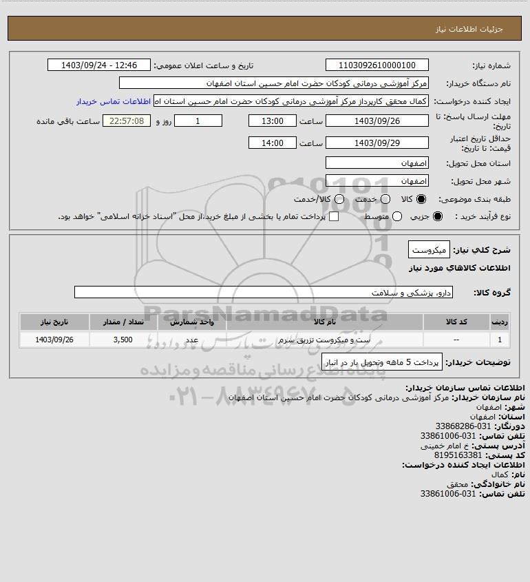 نام دستگاه خریدار:مرکز آموزشی درمانی کودکان حضرت امام حسین استان اصفهان