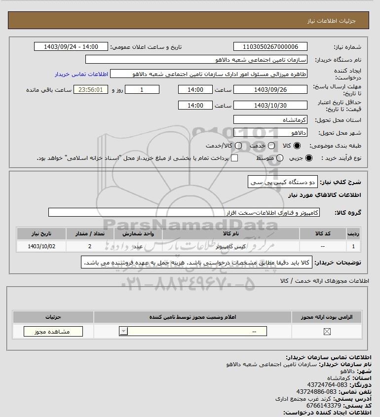 شرح کلی نیاز: دو دستگاه کیس پی سی