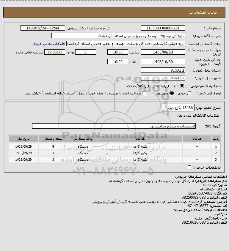 استعلام 15486 پکیج دیواری, استعلام 15486 پکیج دیواری
