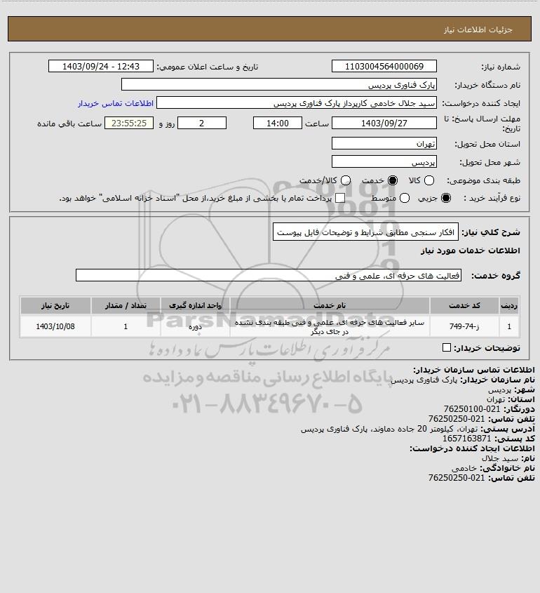 آدرس پستی: تهران، کیلومتر 20 جاده دماوند، پارک فناوری پردیس