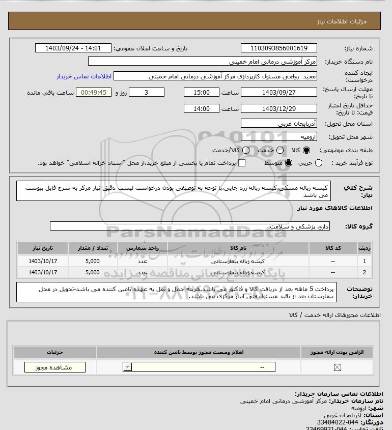 | 2 | -- | کیسه زباله بیمارستانی | عدد | 5,000 | 1403/10/17 |
