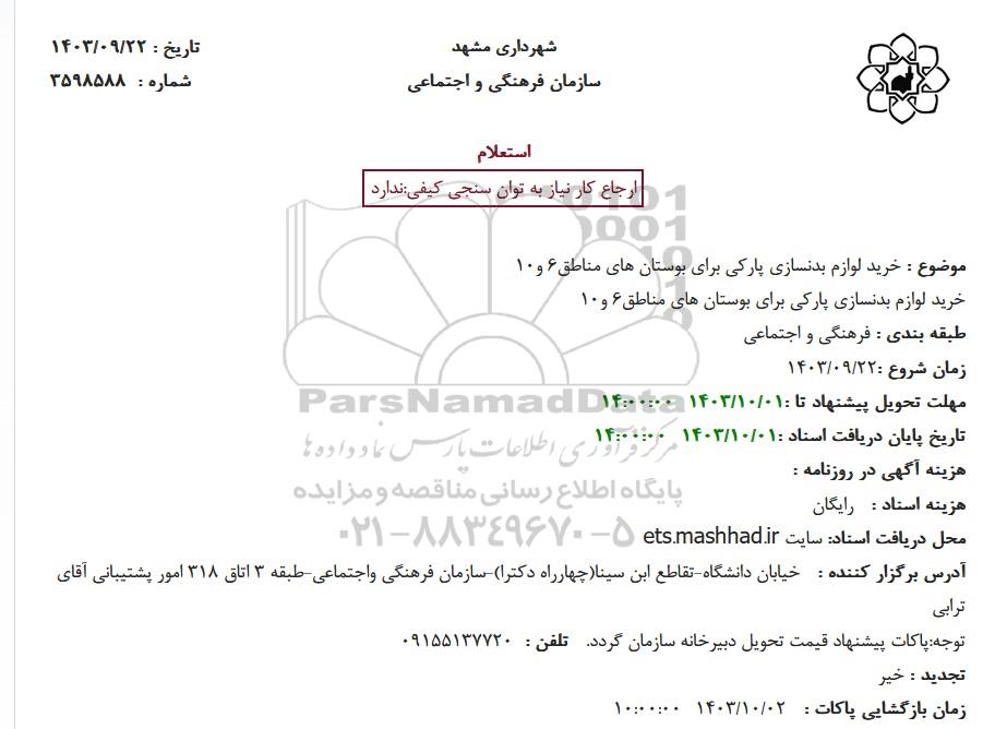 موضوع : خرید لوازم بدنسازی پارکی برای بوستانهای مناطق 6 و 10