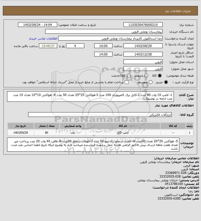 | 1 | -- | لامپ LED | عدد | 80 | 1403/09/29 |