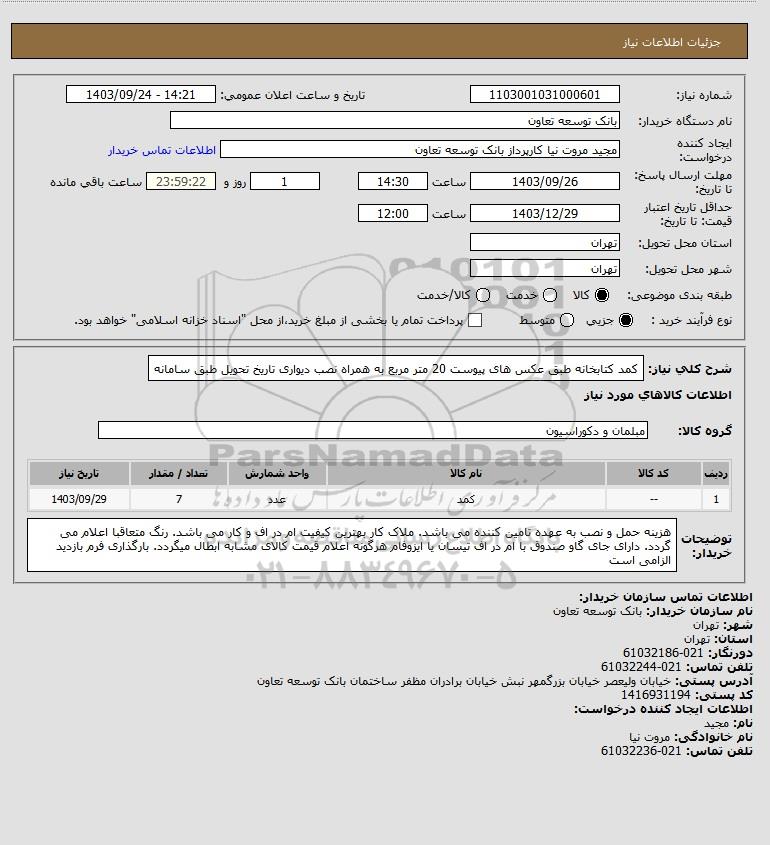 نام سازمان خریدار: بانک توسعه تعاون