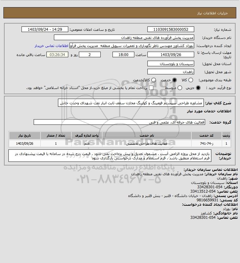 نام دستگاه خریدار:مدیریت پخش فرآورده های نفتی منطقه زاهدان