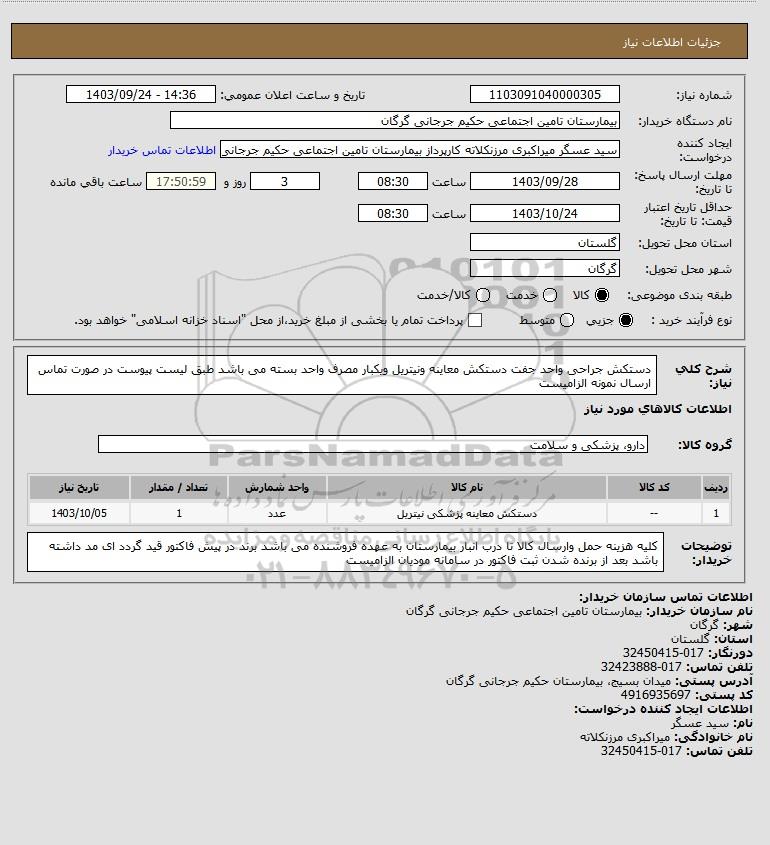 نام دستگاه خریدار:بیمارستان تامین اجتماعی حکیم جرجانی گرگان