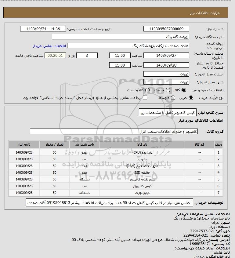 توضیحات خریدار:اجناس مورد نیاز در قالب کیس کامل-تعداد 50 عدد- برای دریافت اطلاعات بیشتر 09195948813 آقای صمدی
