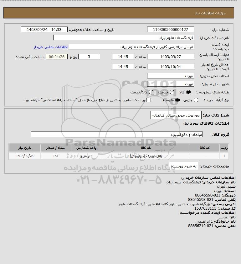 شرح کلی نیاز: دیوارپوش چوبی سالن کتابخانه