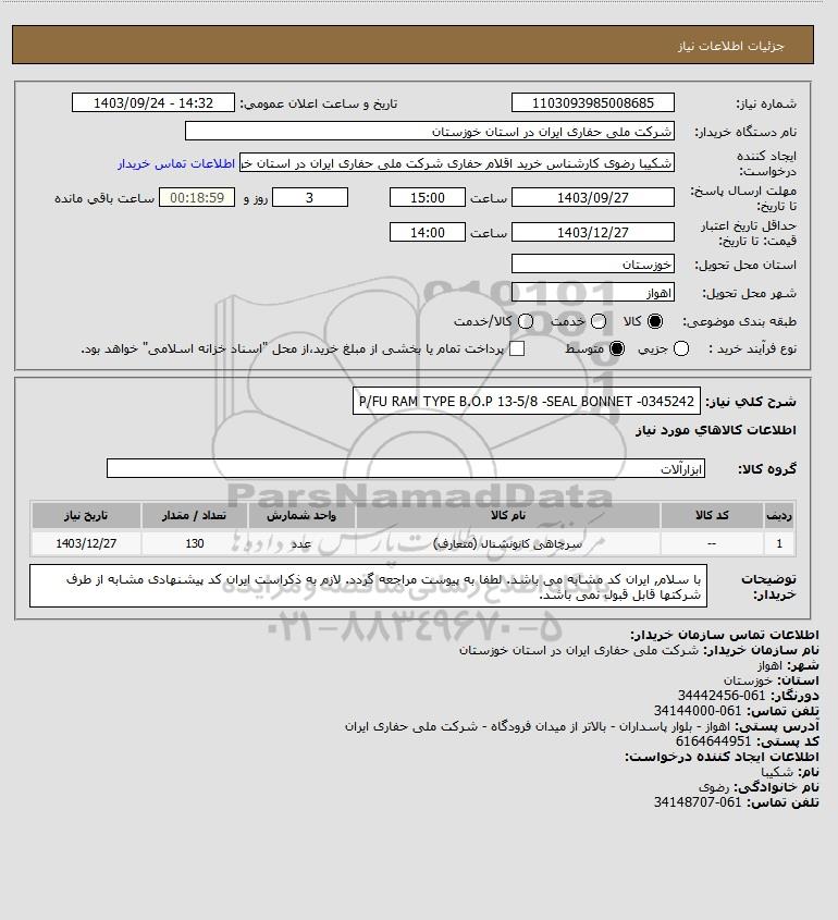 شرح کلی نیاز: P/FU RAM TYPE B.O.P 13-5/8 -SEAL BONNET -0345242
