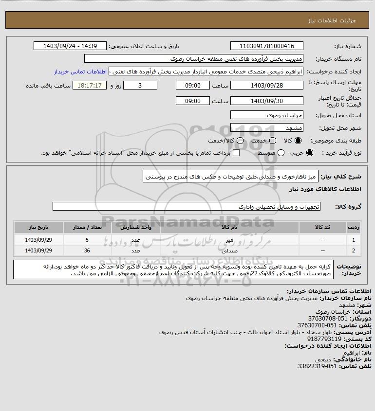نام دستگاه خریدار:مدیریت پخش فرآورده های نفتی منطقه خراسان رضوی
