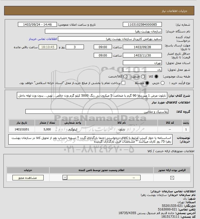 1 -- نایلون کیلوگرم 5,000 1403/10/01