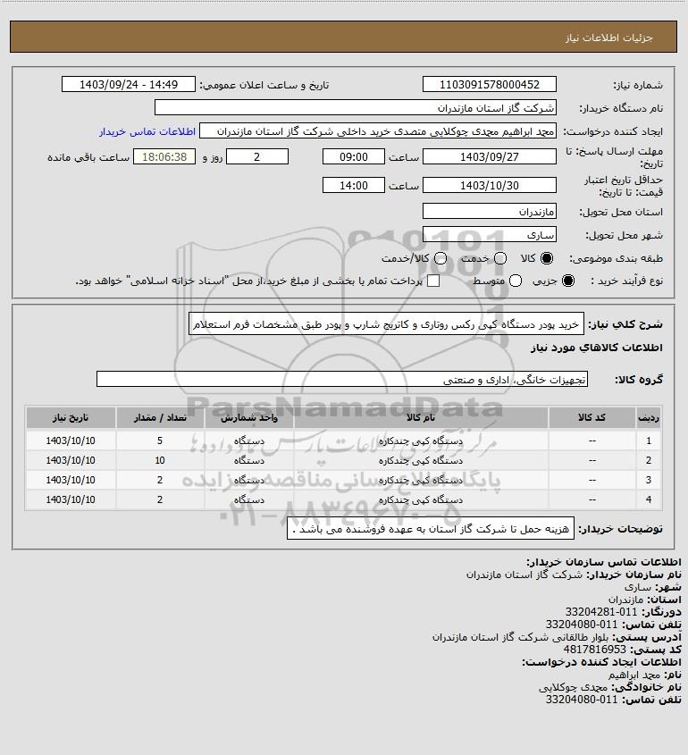 شرح کلی نیاز: خرید پودر دستگاه کپی رکس روتاری و کاتریج شارپ و پودر طبق مشخصات فرم استعلام
