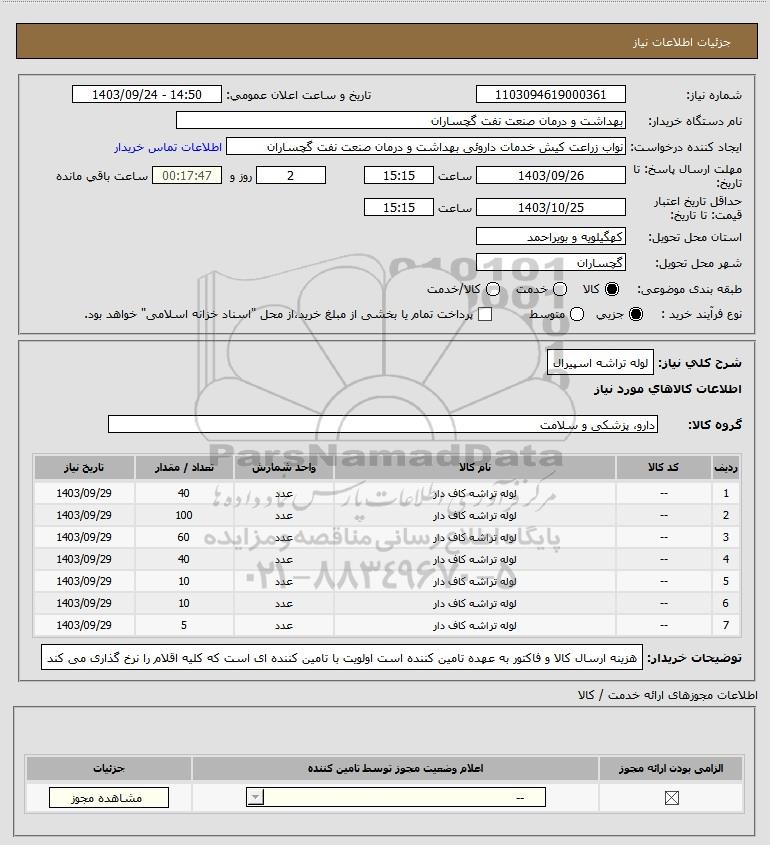 نام دستگاه خریدار:بهداشت و درمان صنعت نفت گچساران