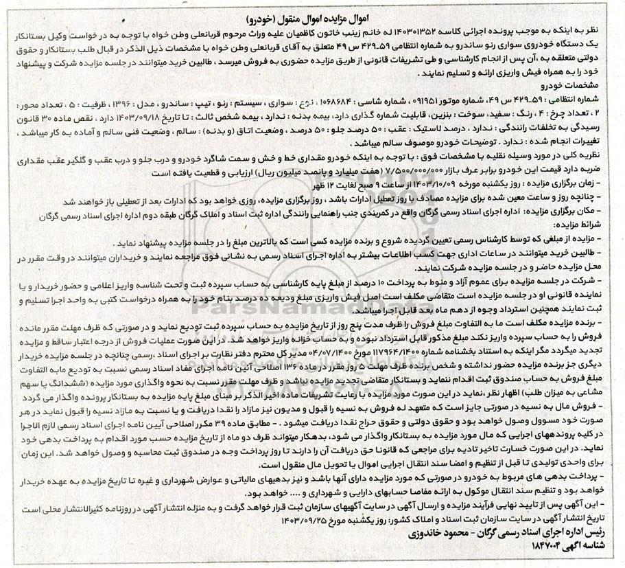 مزایده فروش خودرو رنو ساندرو مدل 1396, مزایده فروش خودرو رنو ساندرو مدل 1396