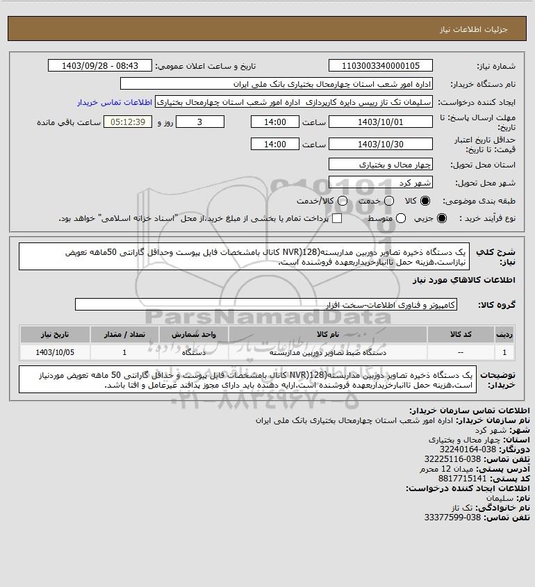 نام دستگاه خریدار:اداره امور شعب استان چهارمحال بختیاری بانک ملی ایران