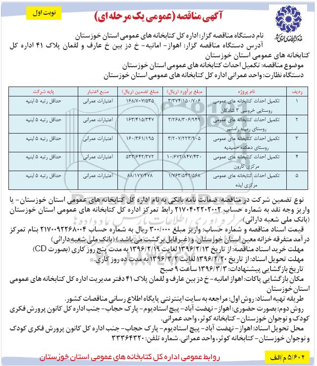 آدرس دستگاه مناقصه گذار: اهواز- امانیه، خ دز بین عارف و لقمان پلاک 41 اداره کل کتابخانه های عمومی استان خوزستان