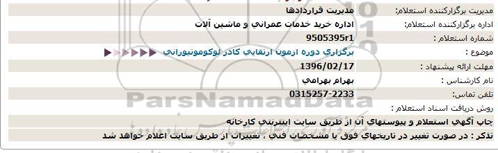 موضوع : برگزاری دوره ازمون ارتقایی کادر لوکوموتیورانی