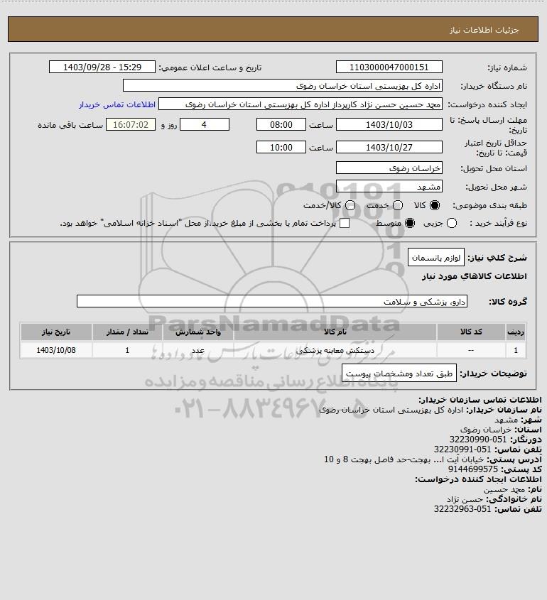 استعلام لوازم پانسمان, استعلام لوازم پانسمان