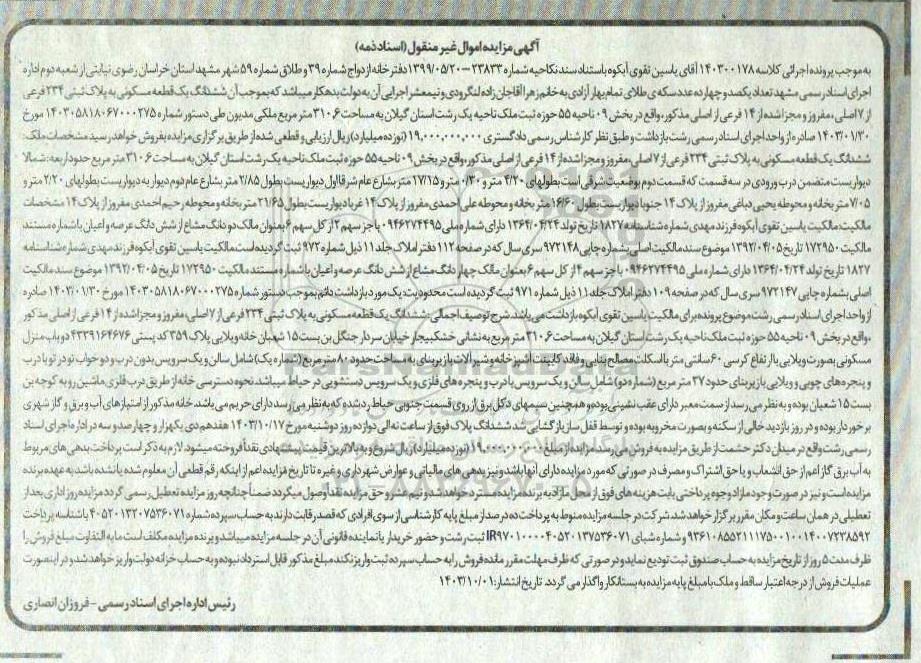 مزایده ششدانگ یک قطعه مسکونی به پلاک ثبتی 234 فرعی از 7 اصلی, مزایده ششدانگ یک قطعه مسکونی به پلاک ثبتی 234 فرعی از 7 اصلی