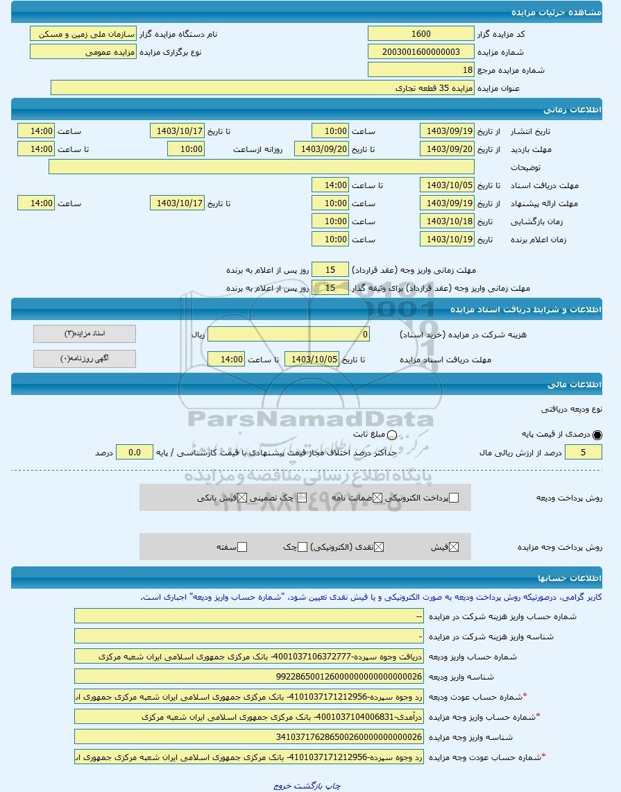 | شماره حساب عودت وجه مزایده | 341037176286500260000000000026 |