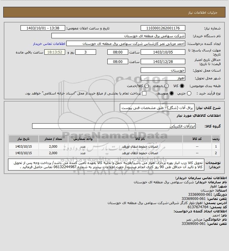 نام دستگاه خریدار:شرکت سهامی برق منطقه ای خوزستان