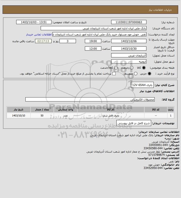 استعلام باتری 12V 65AH, استعلام باتری 12V 65AH