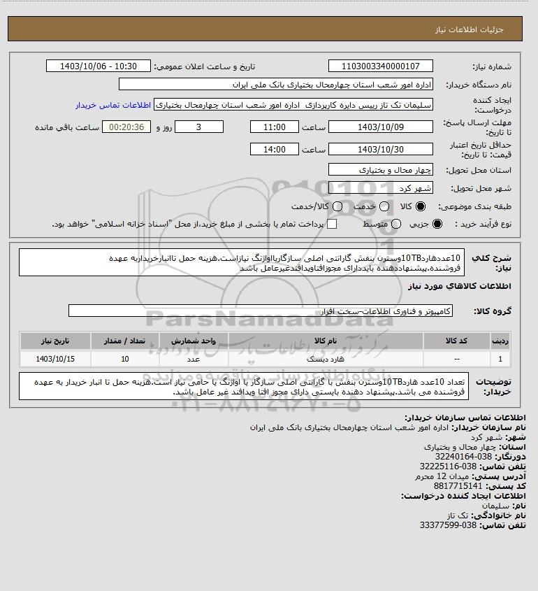 نام دستگاه خریدار:اداره امور شعب استان چهارمحال بختیاری بانک ملی ایران