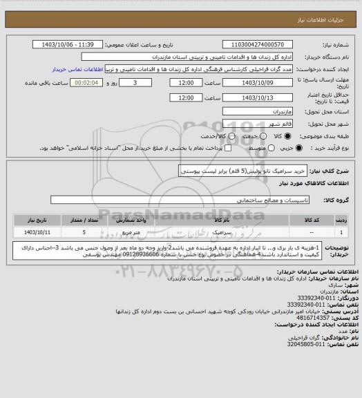 | 1 | -- | سرامیک | متر مربع | 5 | 1403/10/11 |