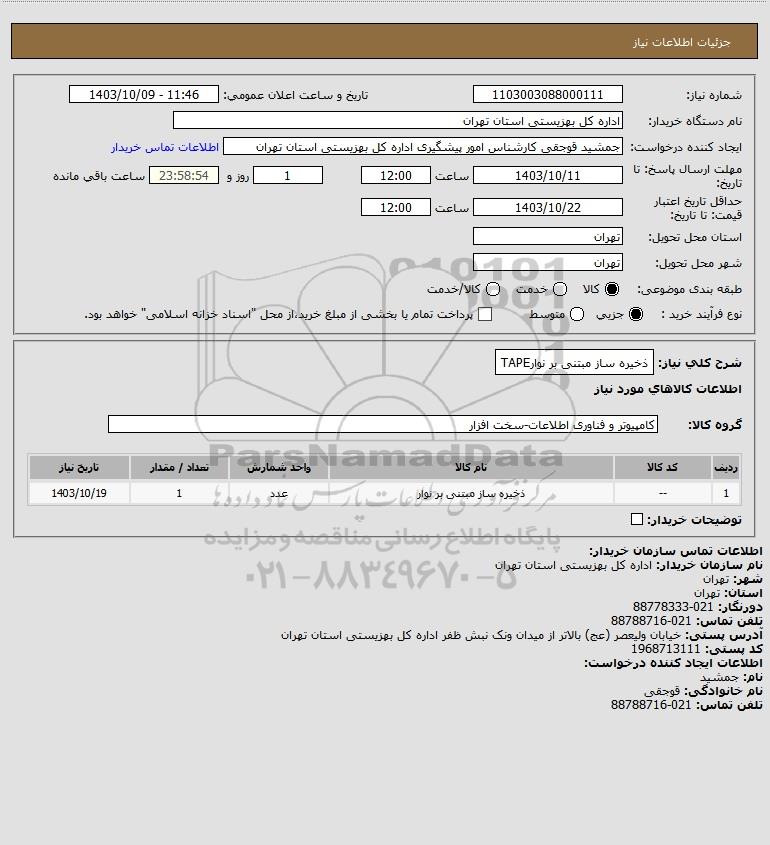 | 1 | -- | ذخیره ساز مبتنی بر نوار | عدد | 1 | 1403/10/19 |