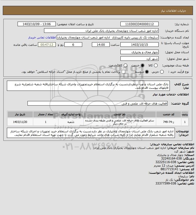 نام دستگاه خریدار:اداره امور شعب استان چهارمحال بختیاری بانک ملی ایران