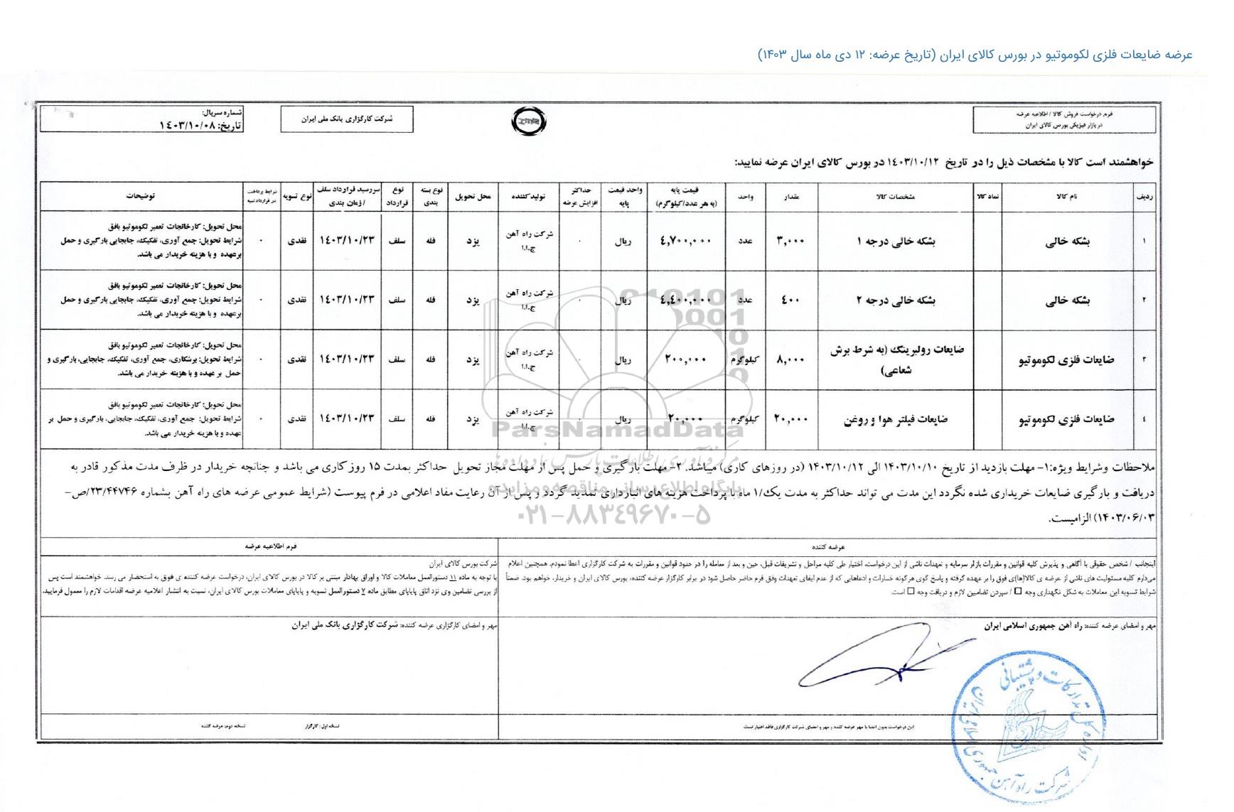 | ضایعات فلزی لکوموتیو | ضایعات فیلتر هوا و روغن | 20.000 | 20.000 | یزد |