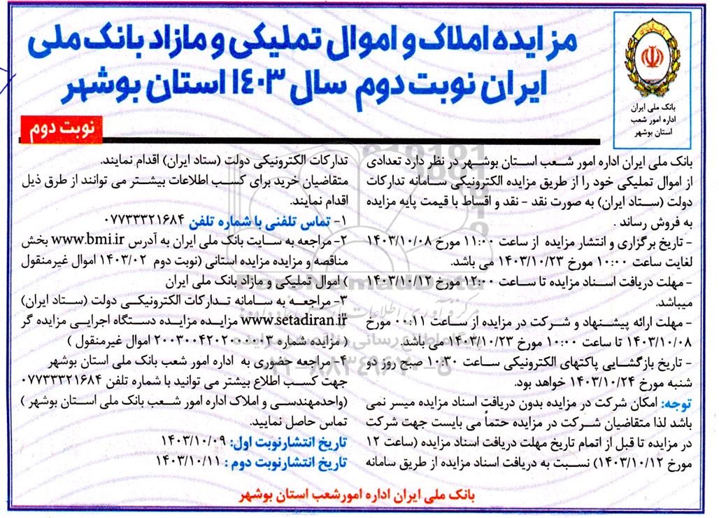زمان مزایده تا ساعت 12 مورخ 1403.10.12